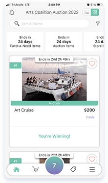 Give guests the gift of choice with app and web-based bidding options. Whether by mobile device or desktop, guests can: