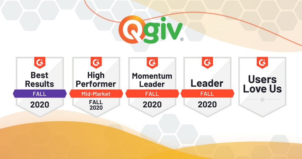 Qgiv ranks as the fundraising software with the best overall results among G2’s Fall 2020 fundraising technology leaders! We’re honored to receive G2’s award for fundraising technology with the Best Results for the second consecutive year, as well as the Best Results Small Business, Small Business Leader, Momentum Leader, High Performer Mid-Market, and the Users Love Us awards.