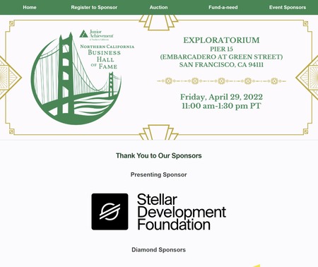 Junior Achievement of Northern California 2022 Business Hall of Fame sponsor page featuring Stellar Development Foundation