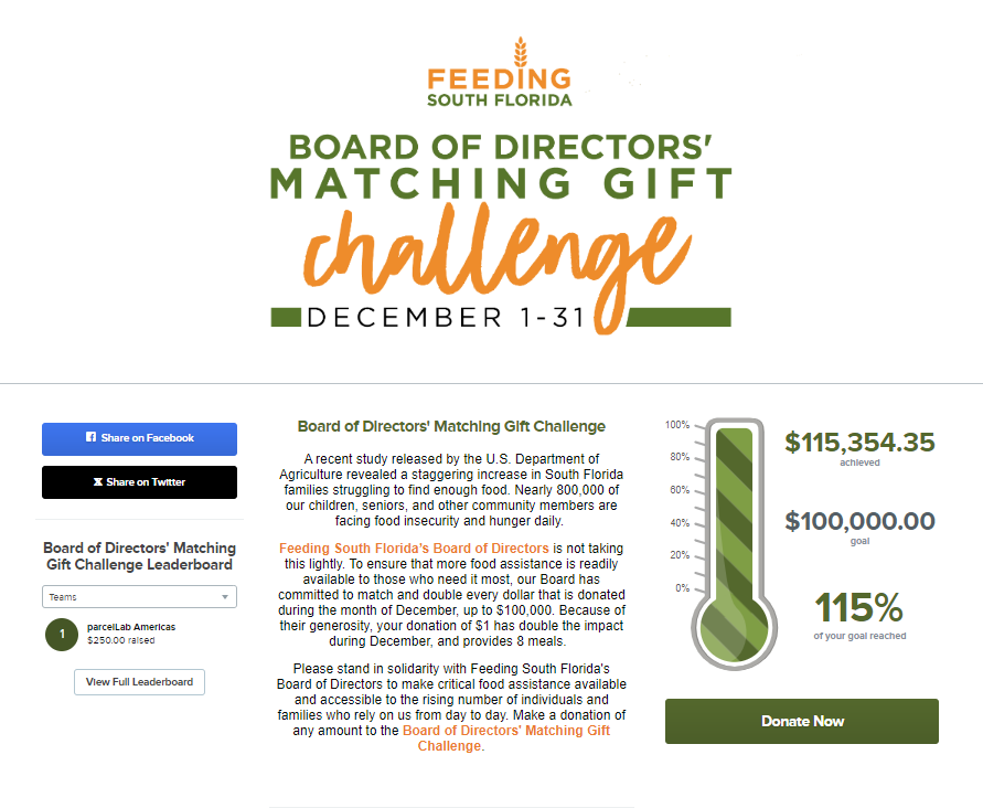 Feeding South Florida hosted a matching gift campaign in December with their Board of Directors for a successful end-of-year campaign. Your organization can adopt a similar campaign for Giving Tuesday!