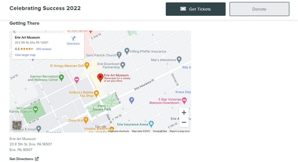 Junior Achievement of Western PA inserted a graphic of a map which shows the location of their event embedded on their registration page.